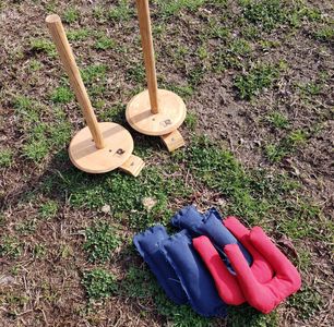 Same rules as horseshoes, or make up your own. Comes with four cornshoe bags.